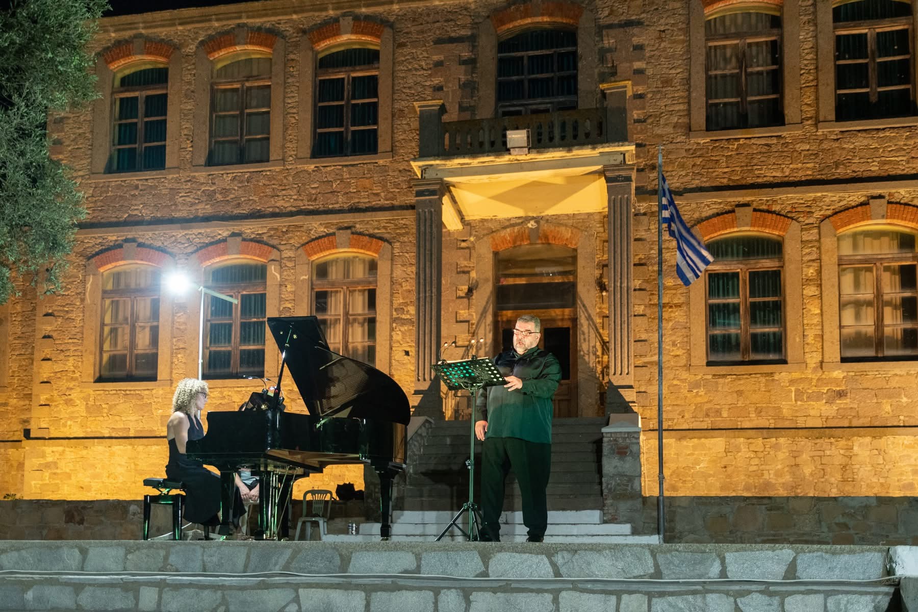Ο βαρύτονος Δημήτρης Πλατανιάς και η πιανίστα Σοφία Ταμβακοπούλου παρουσίασαν ένα πρόγραμμα μουσικής περιπλάνησης, με φόντο το ίδιο το σχολείο, ένα κτίριο τοπόσημο για τον Μούδρο, που εχθές το βράδυ έγινε σκηνή πολιτισμού.