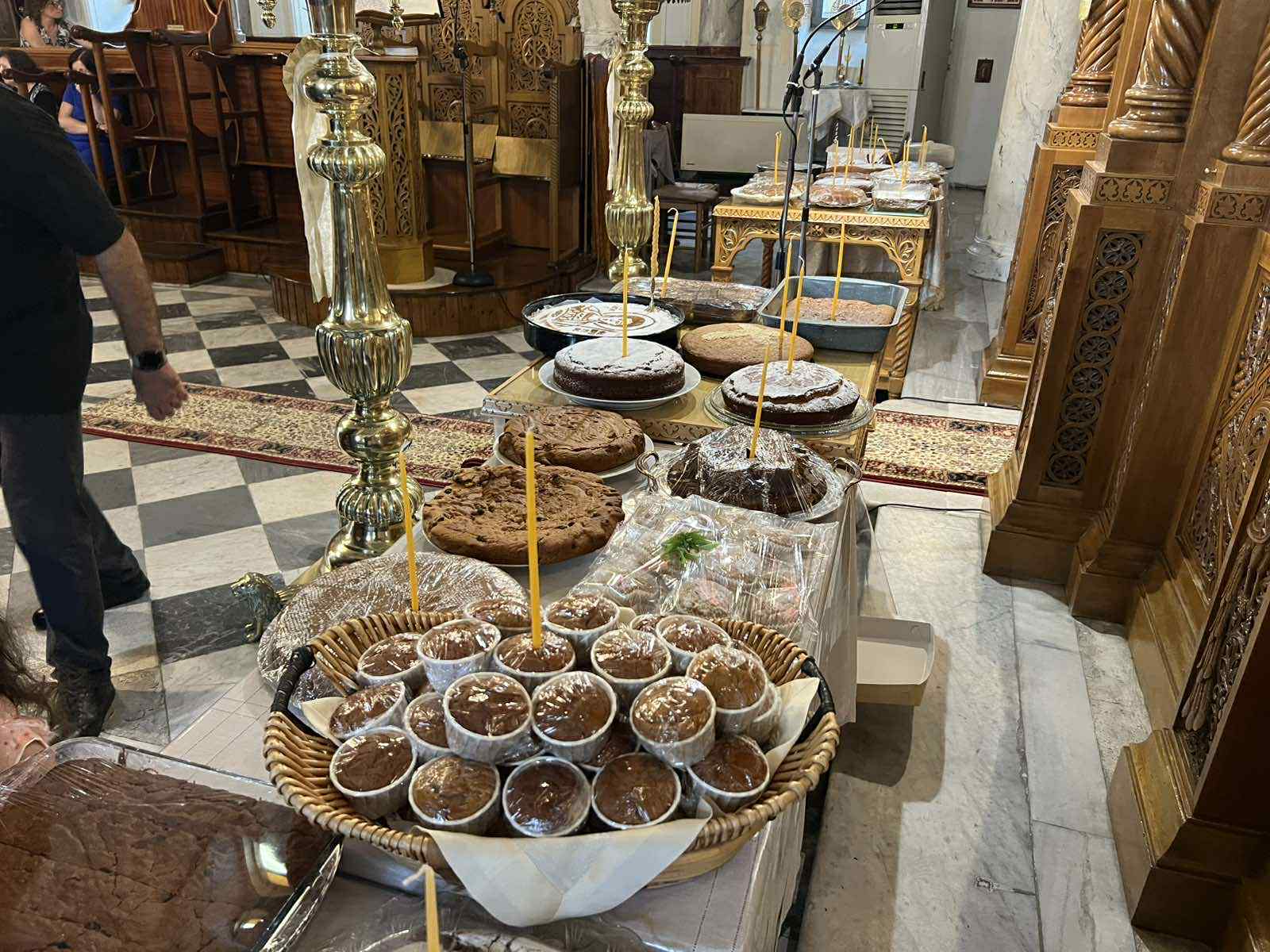 Ο ναός πλημμύρισε από φανουρόπιτες, τις παραδοσιακές νηστίσιμες πίτες που προσφέρονται προς τιμήν του Αγίου, τηρώντας ένα έθιμο βαθιά ριζωμένο στη λαϊκή θρησκευτικότητα. Σύμφωνα με την παράδοση, οι φανουρόπιτες παρασκευάζονται από πιστούς που ζητούν από τον Άγιο να "φανερώσει" κάτι — είτε πρόκειται για ένα χαμένο αντικείμενο, μια λύση σε ένα πρόβλημα ή ακόμη και μια εσωτερική καθοδήγηση.