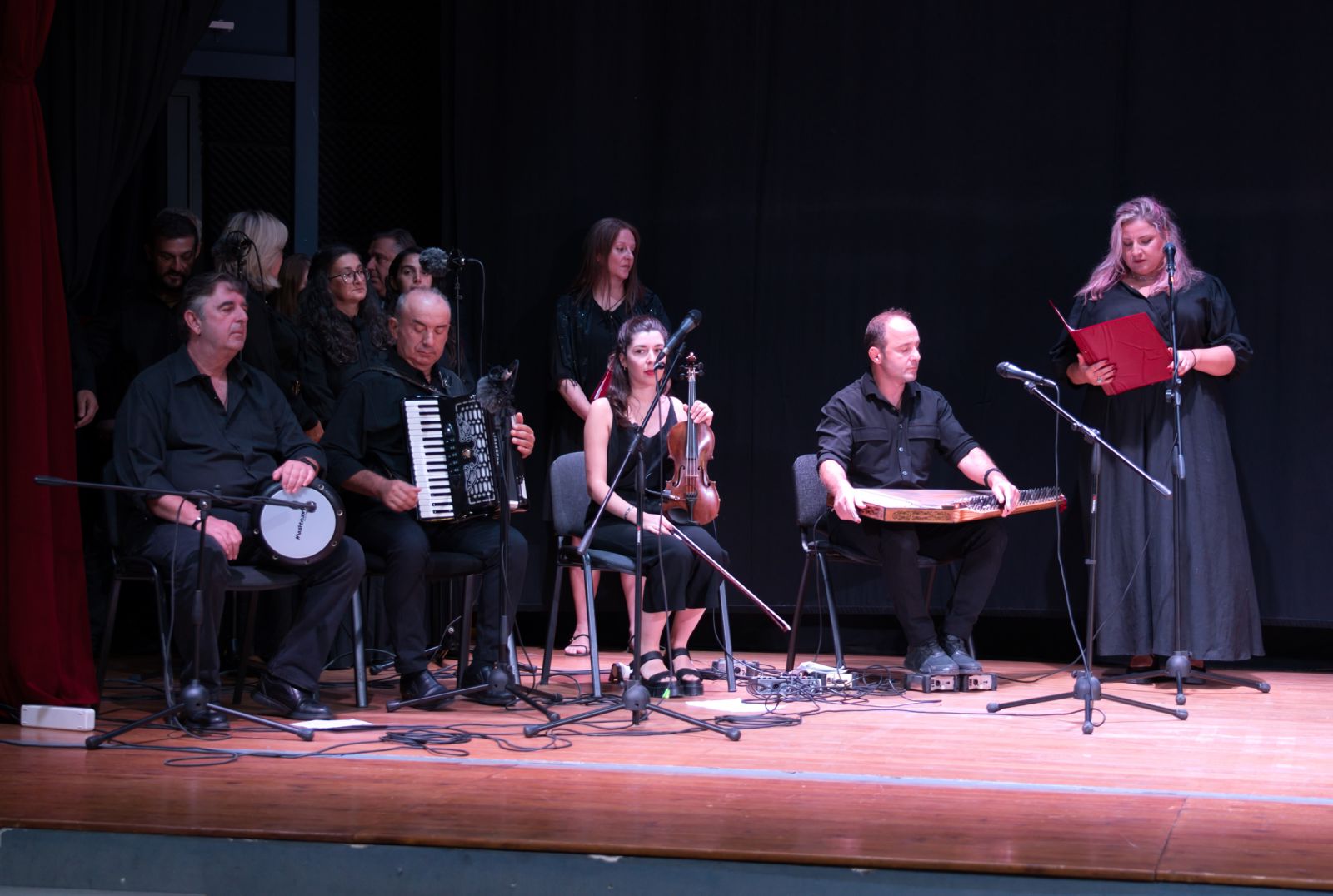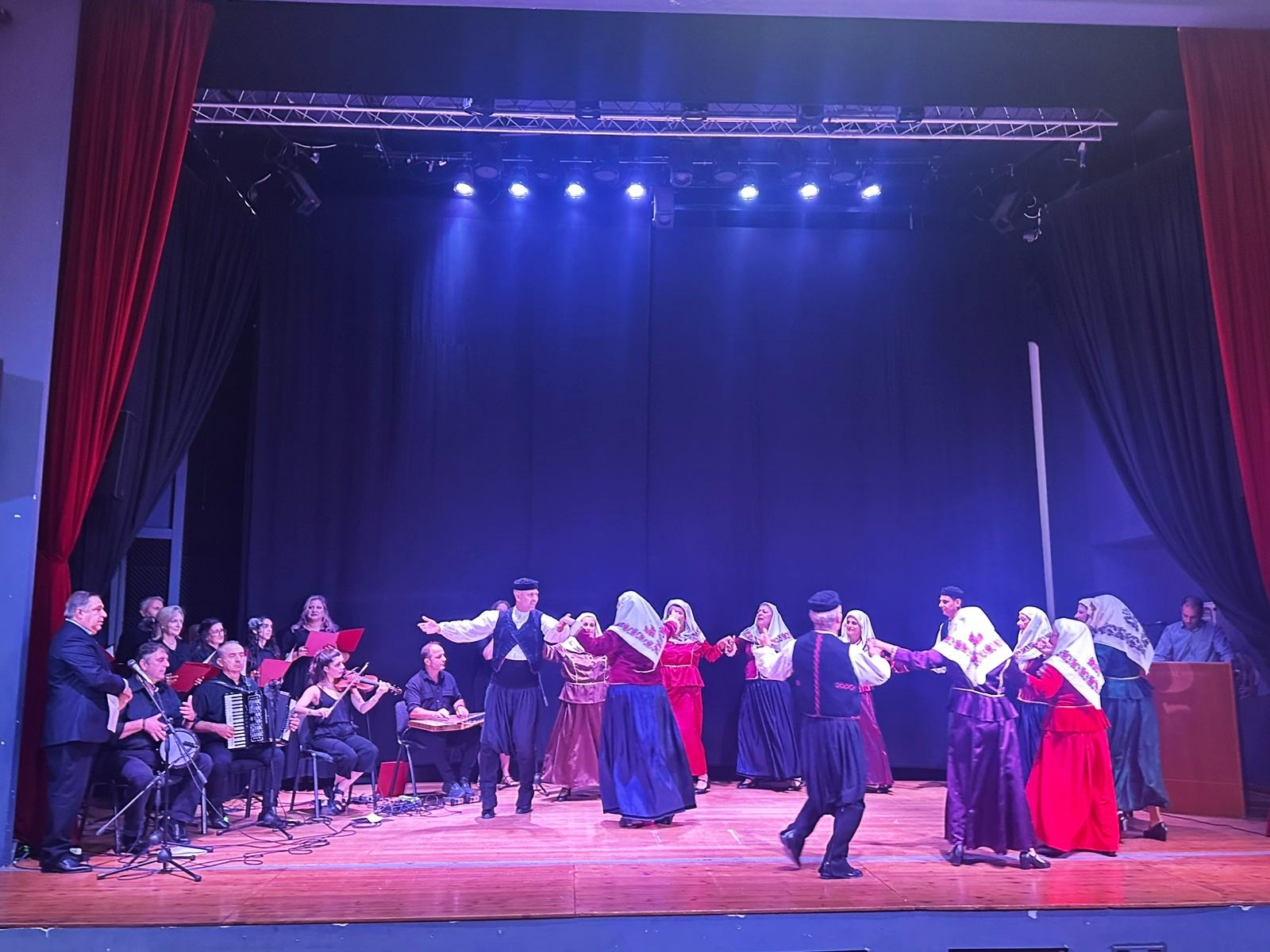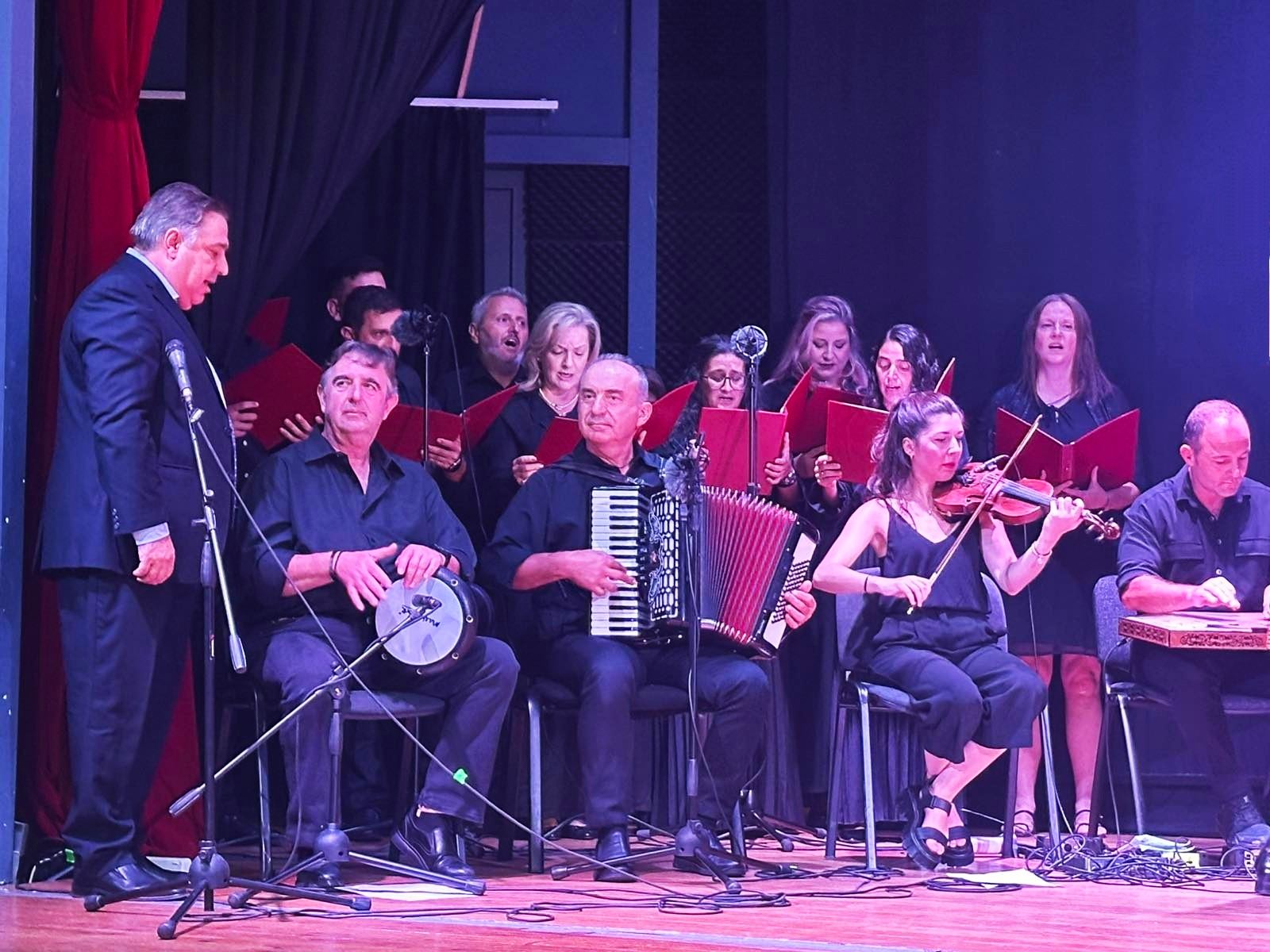 Ακολούθησε η παρουσίαση της δεύτερης ενότητας από τον κ. Θεόφραστο Βογιατζή, η οποία περιελάμβανε μουσική εκτέλεση εκ μέρους της εικοσαμελούς Παραδοσιακής και Βυζαντινής Χορωδίας του Δήμου Αχαρνών, υπό την διεύθυνση του Μουσικοδιδασκάλου και Χοράρχη κ. Δημητρίου Καλομοίρη, με γνωστά Μικρασιάτικα τραγούδια, τα οποία χόρεψε υποδειγματικά το χορευτικό τμήμα του Εξωραϊστικού και Μορφωτικού Συλλόγου Ανδρωνίου.