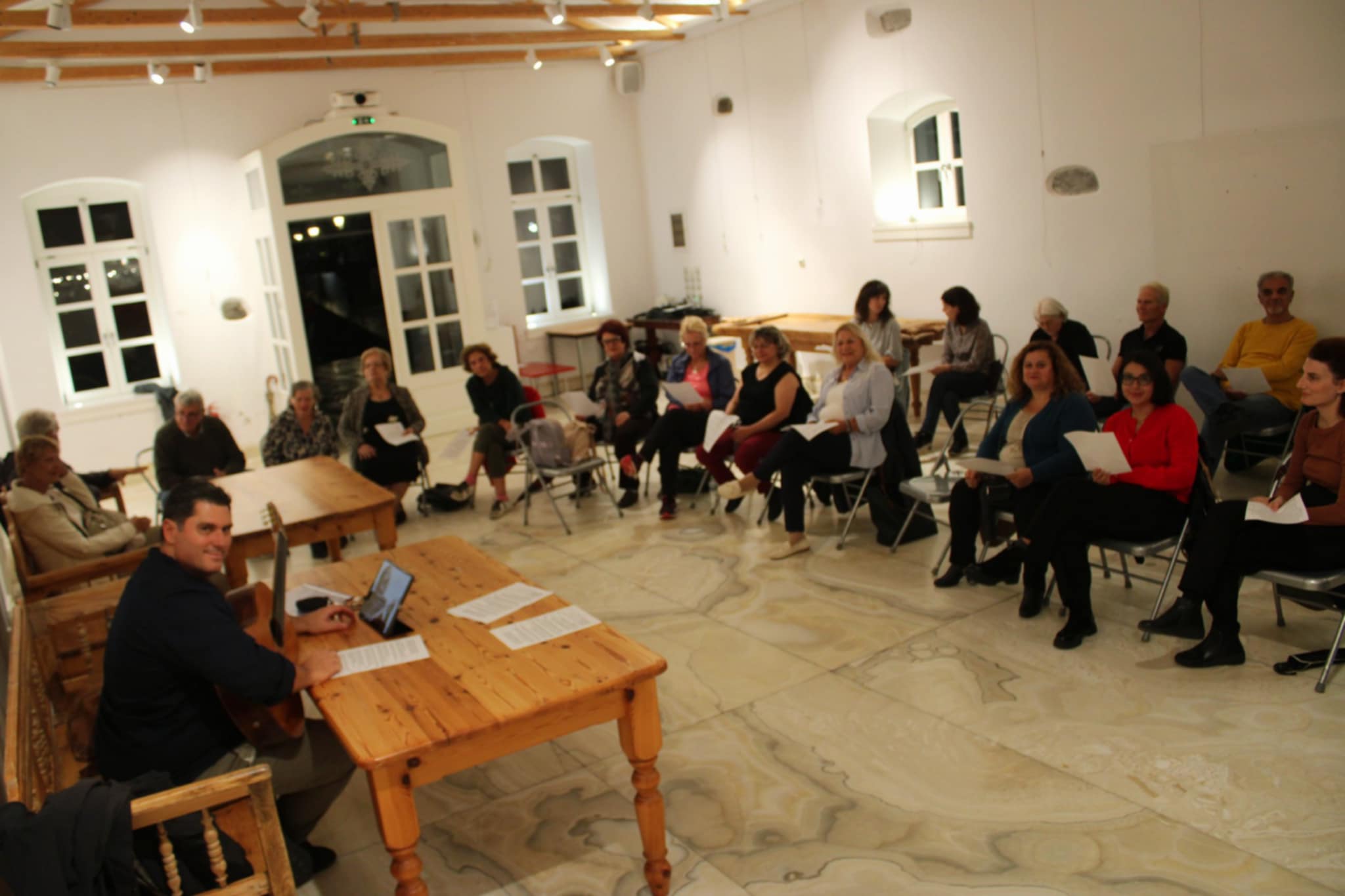 Η πρώτη πρόβα πραγματοποιήθηκε σε ζεστό και φιλικό κλίμα, πριν από λίγες ημέρες στον πολυχώρο «Αποθήκη» με τη συμμετοχή παλαιών αλλά και νέων φίλων της χορωδίας, ανάμεσά τους και επισκέπτες που δήλωσαν εντυπωσιασμένοι από το εγχείρημα.