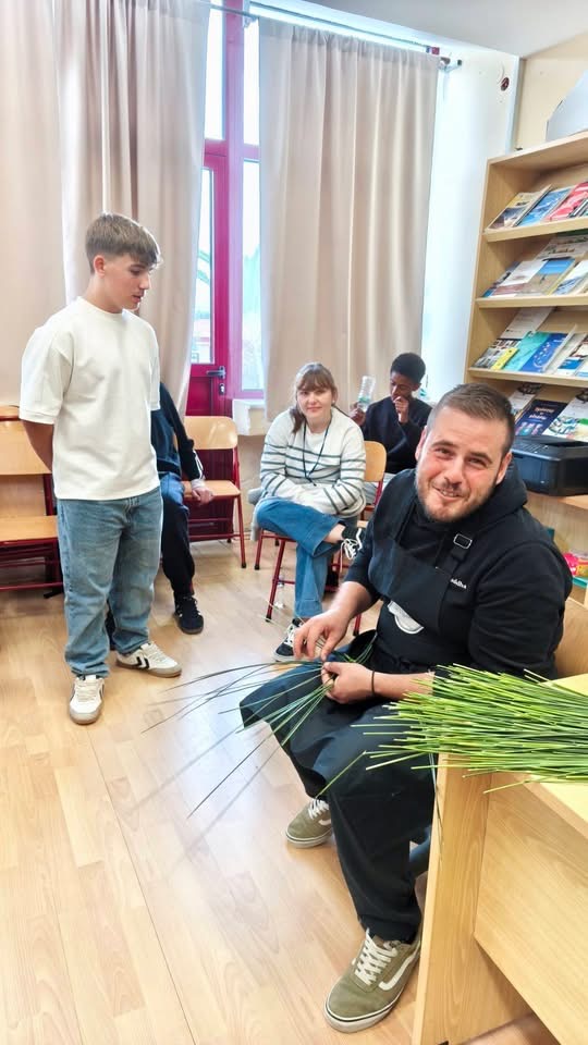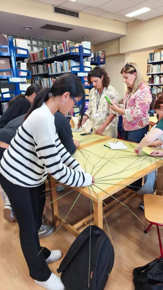 Ο κ. Γιαννέλης ανέλυσε τα ιδιαίτερα χαρακτηριστικά της πολιτιστικής ταυτότητας της Λήμνου και συντόνισε ένα βιωματικό εργαστήριο καλαθοπλεκτικής τυρβολιών, δίνοντας στους μαθητές την εμπειρία να δημιουργήσουν οι ίδιοι τα παραδοσιακά καλαθάκια που συνδέονται με την τυροκομική παράδοση του τόπου!