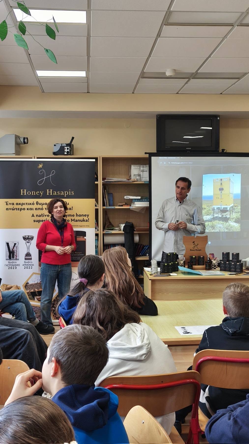 Κεντρικός ομιλητής ήταν ο κ. Δημήτριος Χασάπης (Honey Hasapis), ο οποίος παρουσίασε με γλαφυρό τρόπο τη διαδικασία παραγωγής του μελιού, τη σημασία της μέλισσας για το περιβάλλον, καθώς και τη διατροφική και θεραπευτική αξία του φυσικού αυτού προϊόντος. Η εκδήλωση έκλεισε με γευστική δοκιμή μελιού, αφήνοντας εξαιρετικές εντυπώσεις σε μαθητές και εκπαιδευτικούς.