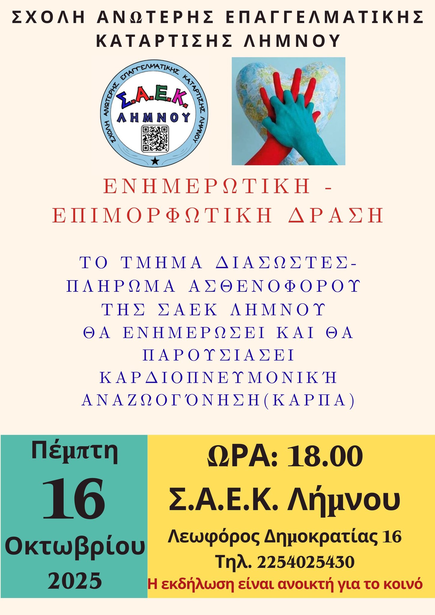 Η Σ.Α.Ε.Κ. Λήμνου απέδειξε για ακόμη μία φορά τον ενεργό κοινωνικό της ρόλο, προάγοντας την εκπαίδευση, την υπευθυνότητα και την αλληλεγγύη, ενώ ανακοίνωσε ότι παρόμοιες ενημερωτικές δράσεις θα συνεχιστούν στο άμεσο μέλλον.
