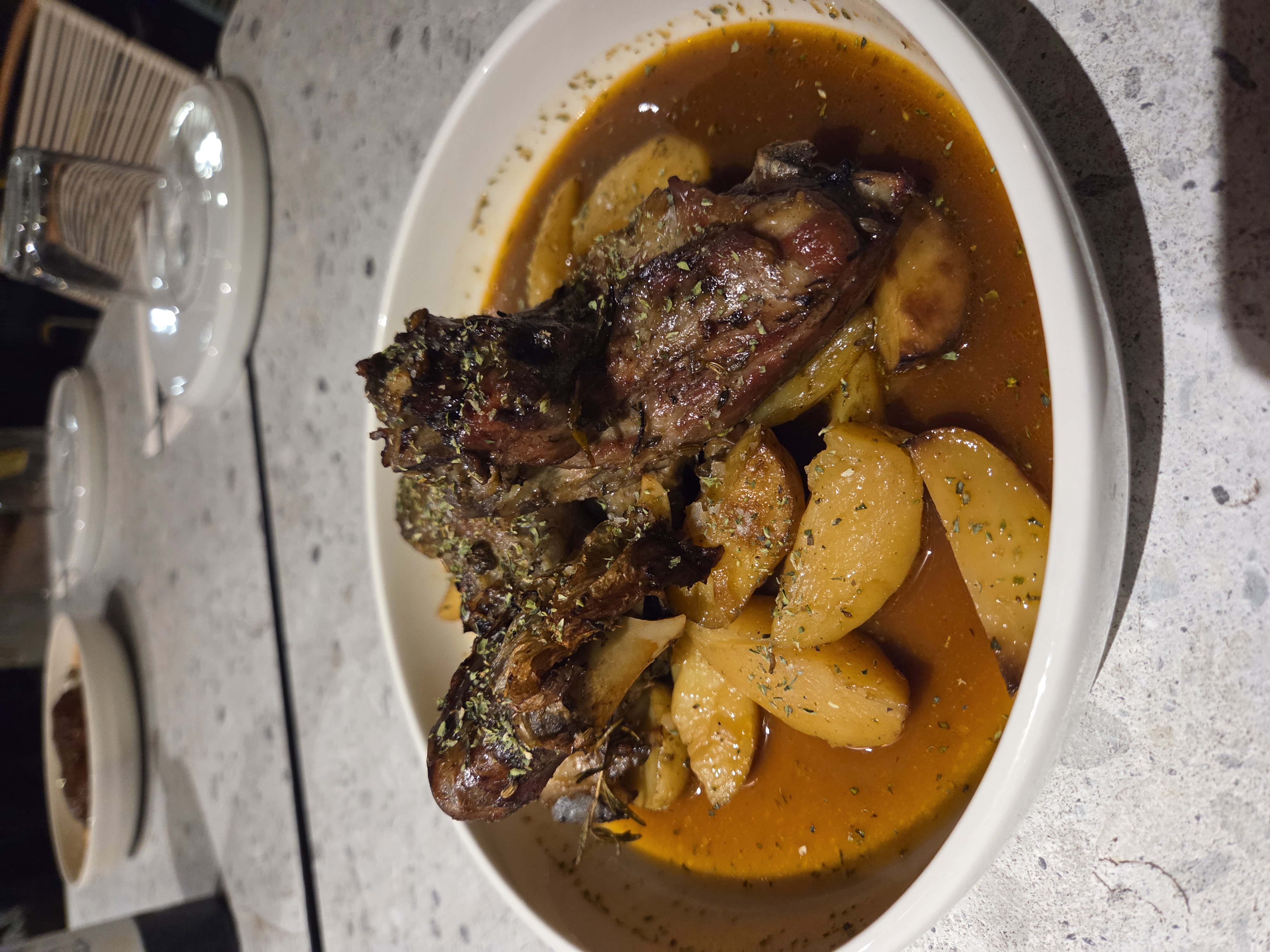 Αρνάκι σιγομαγειρεμένο στις κλιματσίδες με ρετσίνα Γκαράλη και σταφυλόσταγμα Αχιλλαδέλη