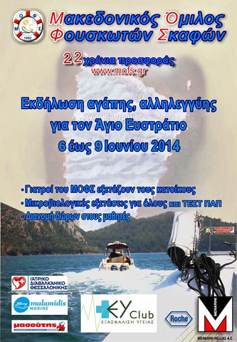 «Αποστολή αγάπης, υγείας και αλληλεγγύης, προς τους κατοίκους του ακριτικού Άγιου Ευστρατίου οργάνωσε στις 6 έως 9 Ιουνίου (του Αγίου Πνεύματος), ο Μακεδονικός Όμιλος Φουσκωτών Σκαφών (Μ.Ο.Φ.Σ), στο πλαίσιο των εκδηλώσεων για τα 22 χρόνια λειτουργίας και προσφοράς από την ίδρυσή του.