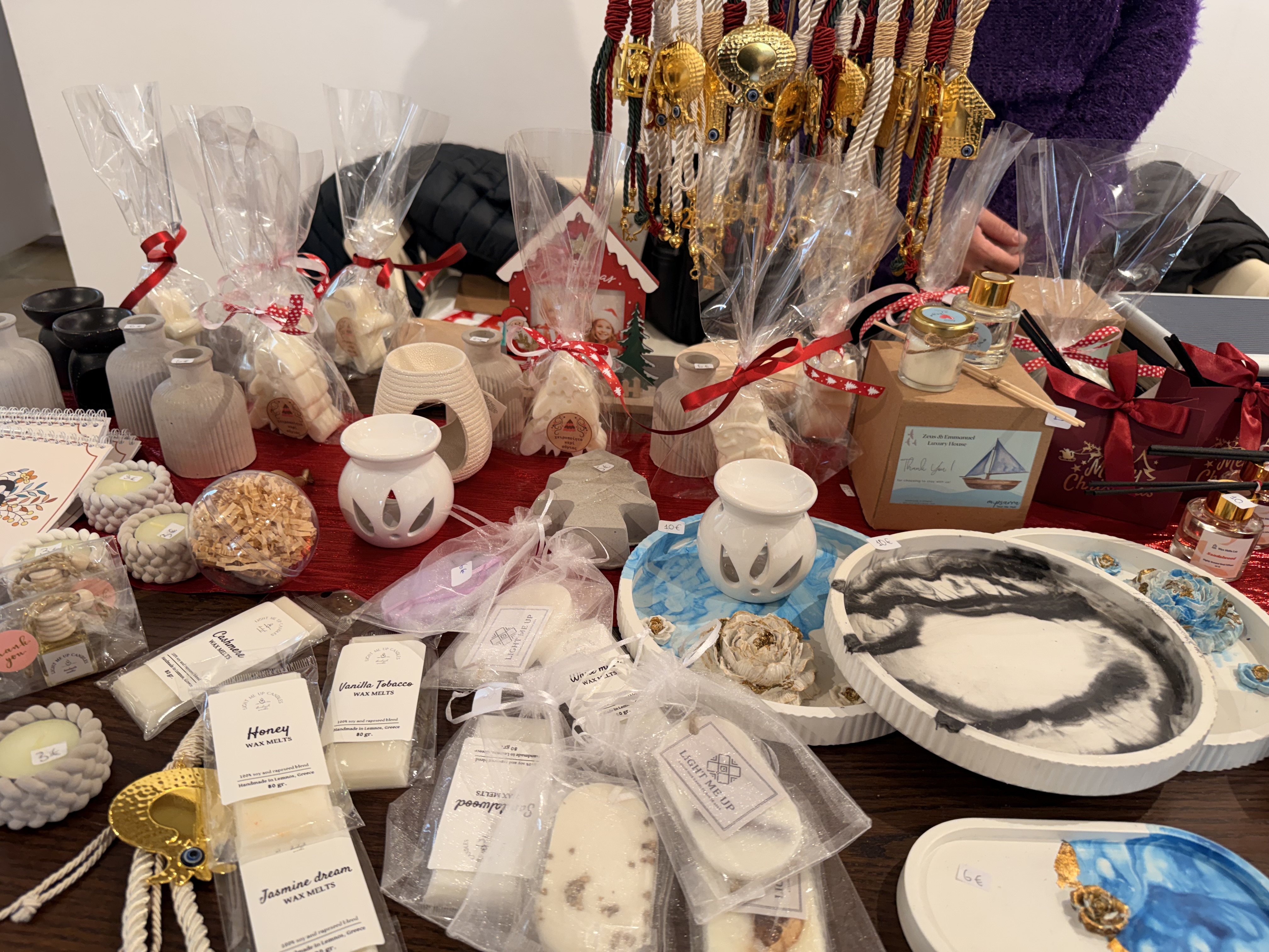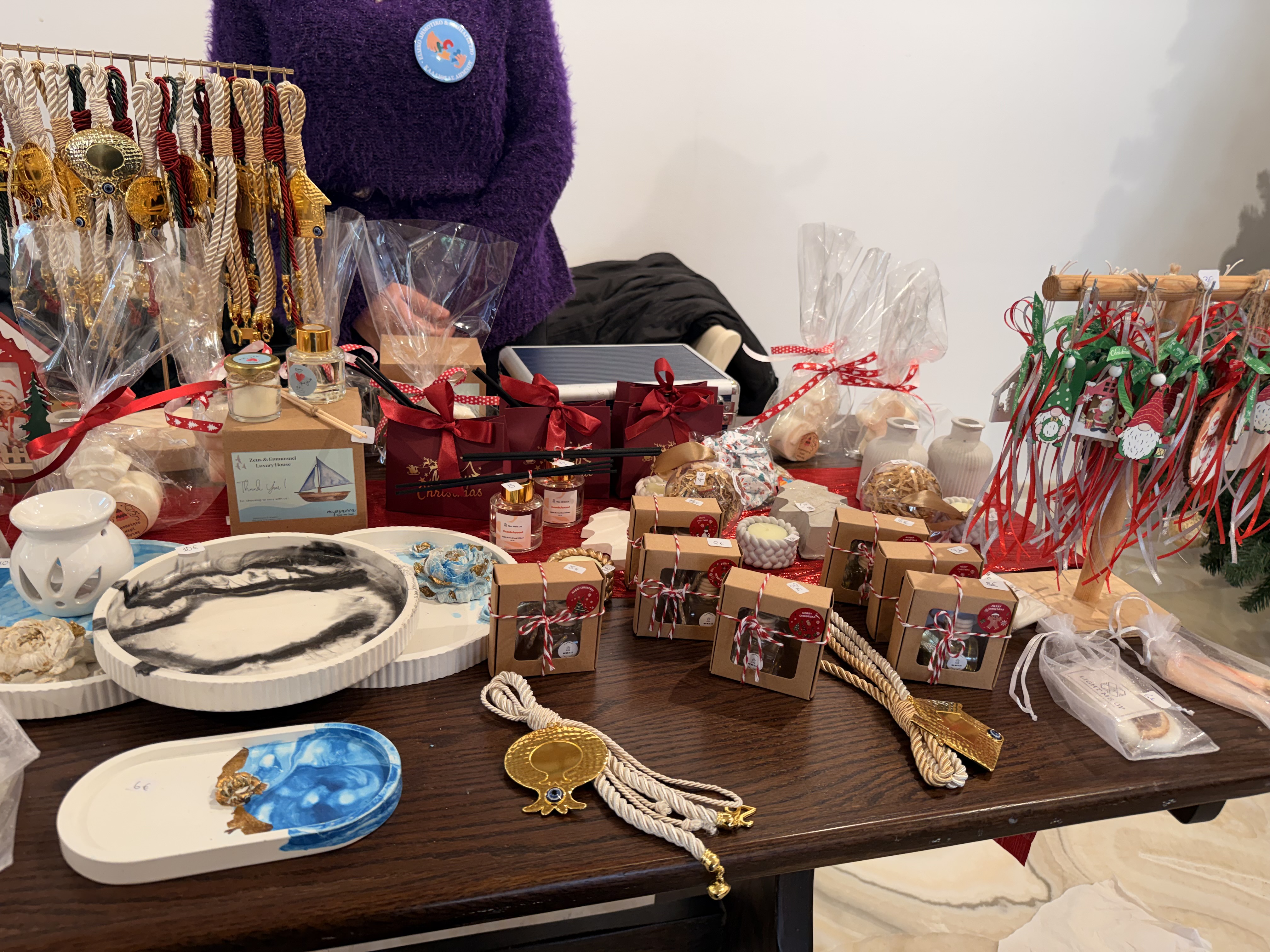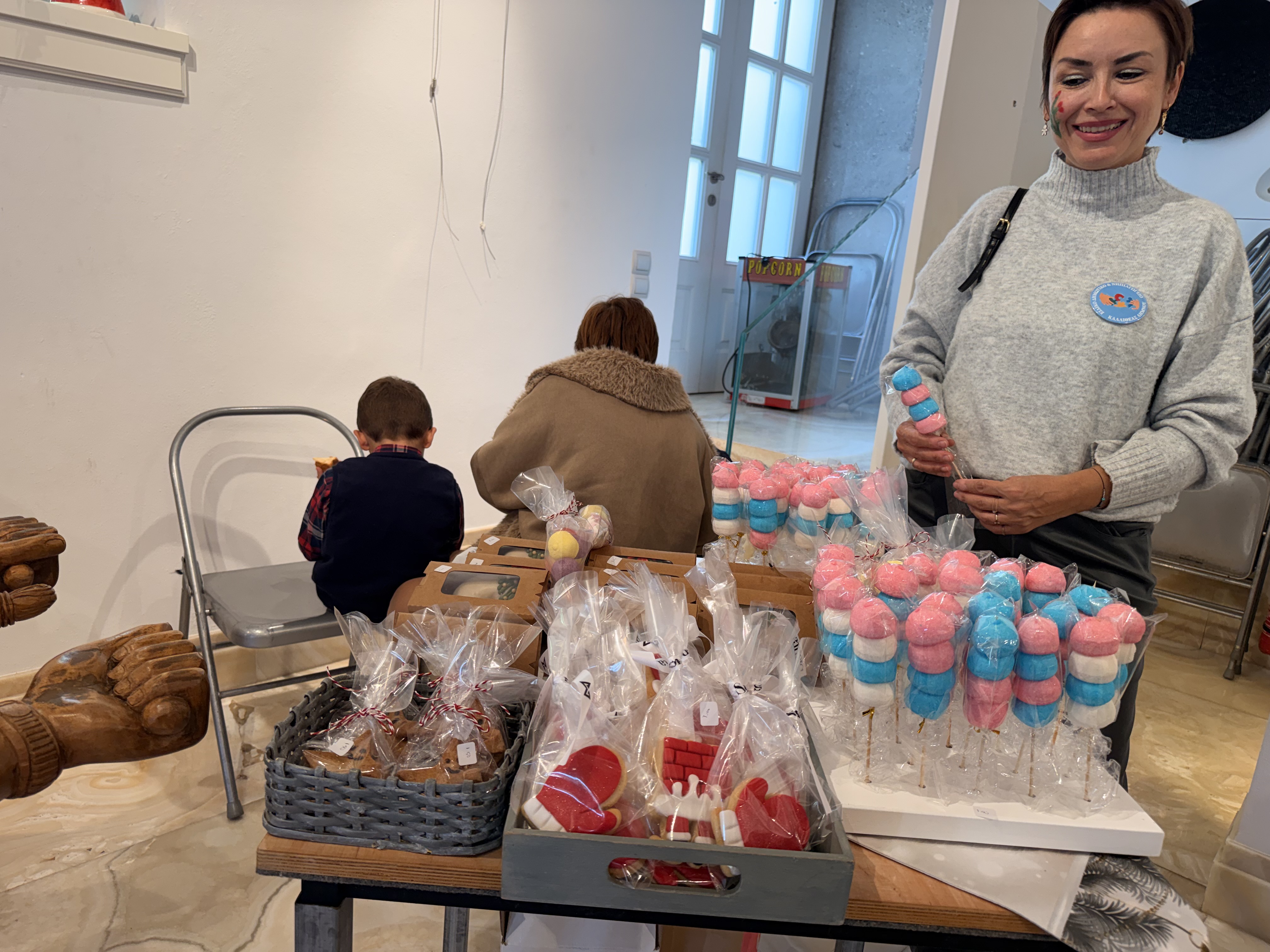 Στα τραπέζια που έχουν στηθεί, θα βρείτε πραγματικά όμορφα χριστουγεννιάτικα ενθύμια, χειροποίητες δημιουργίες και πολλά μικρά δωράκια για τις γιορτές! Α, και εξαιρετική ζεστή σοκολάτα. Το απόγευμα οι μικροί επισκέπτες θα βρουν να τους περιμένουν λουκουμάδες και ποπ κορν!