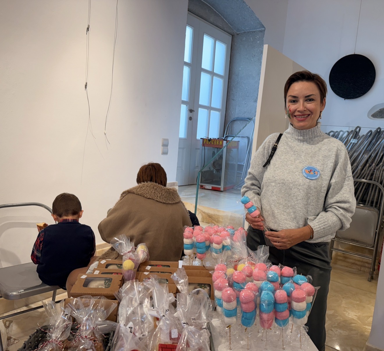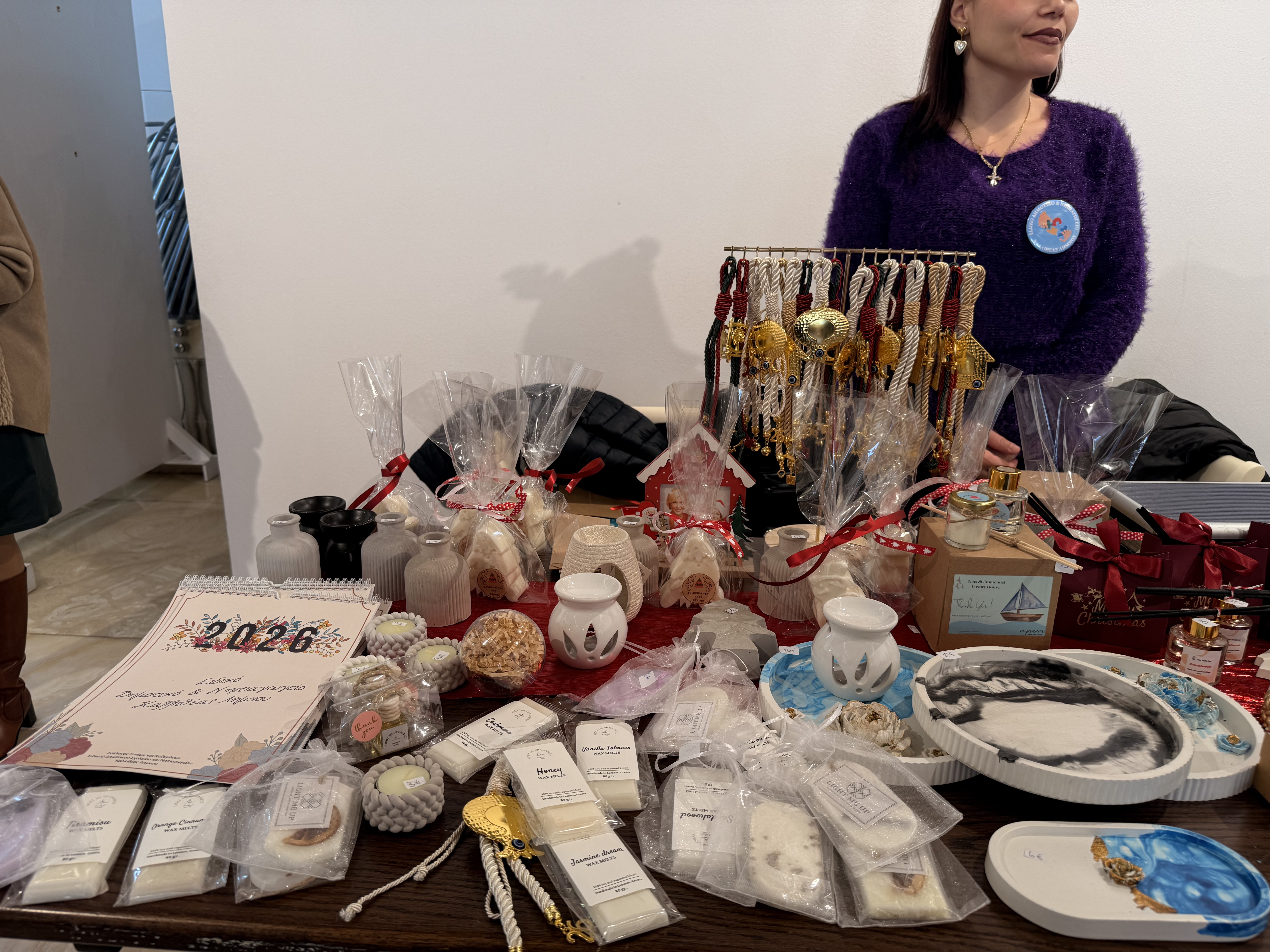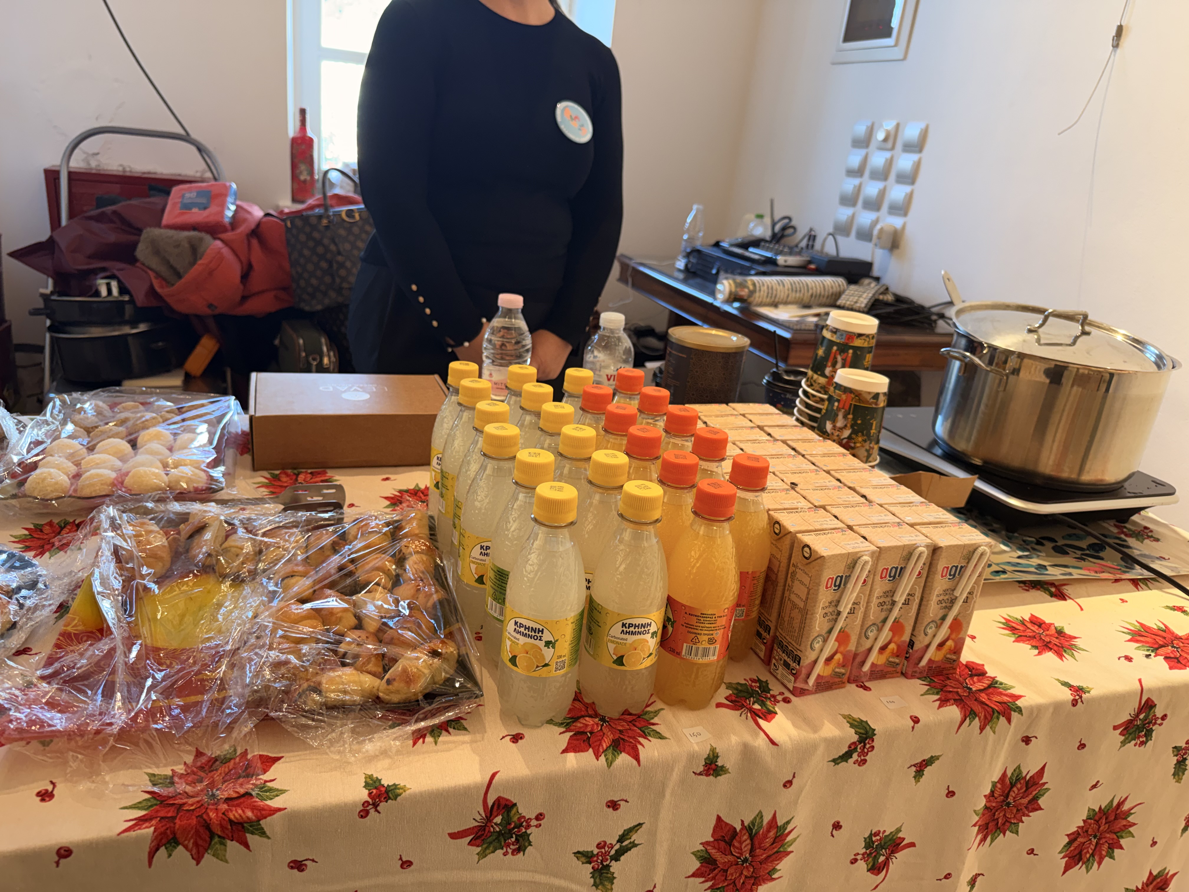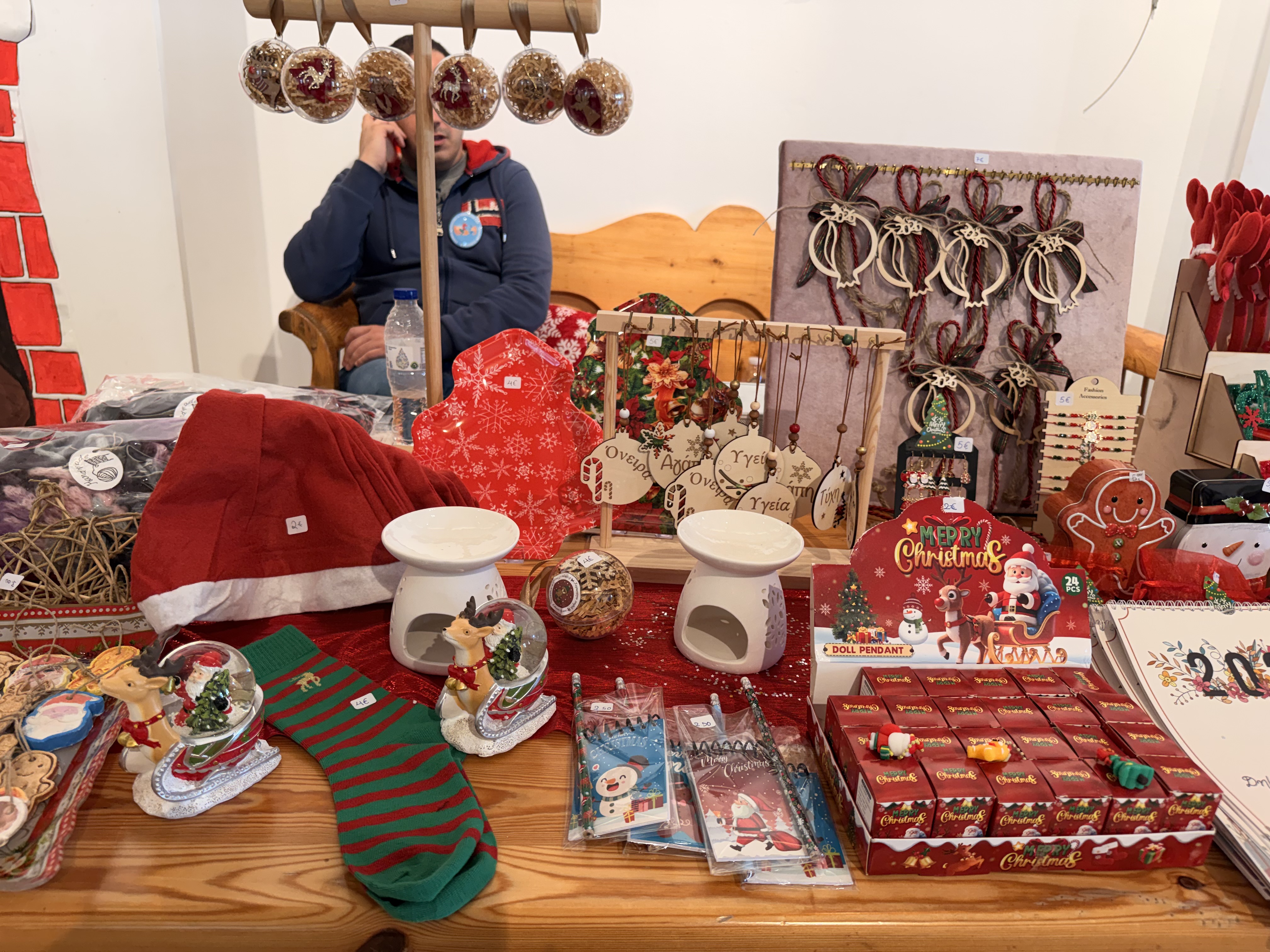 Στα τραπέζια που έχουν στηθεί, θα βρείτε πραγματικά όμορφα χριστουγεννιάτικα ενθύμια, χειροποίητες δημιουργίες και πολλά μικρά δωράκια για τις γιορτές! Α, και εξαιρετική ζεστή σοκολάτα. Το απόγευμα οι μικροί επισκέπτες θα βρουν να τους περιμένουν λουκουμάδες και ποπ κορν!