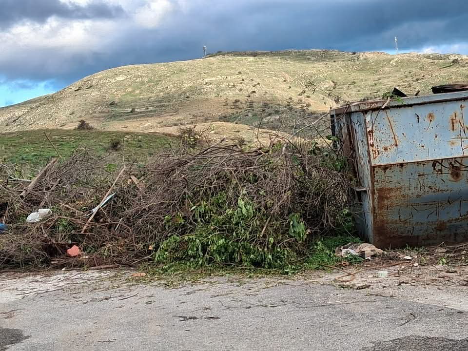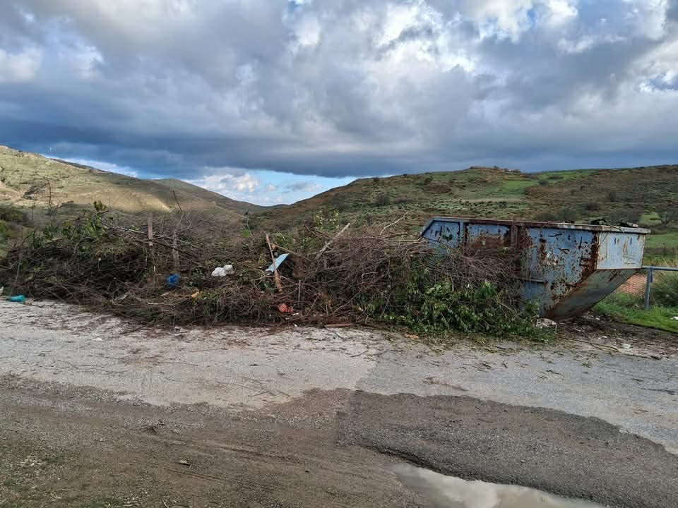 Στις φωτογραφίες, διαλρίνεταο ένας μεγάλος όγκος από κλαδέματα και άλλα απορρίμματα που έχουν αφεθεί στο έδαφος, ακριβώς δίπλα από τον κάδο, ο οποίος παραμένει άδειος!