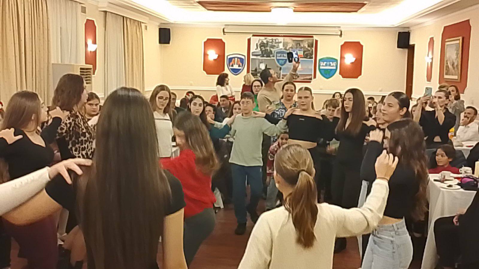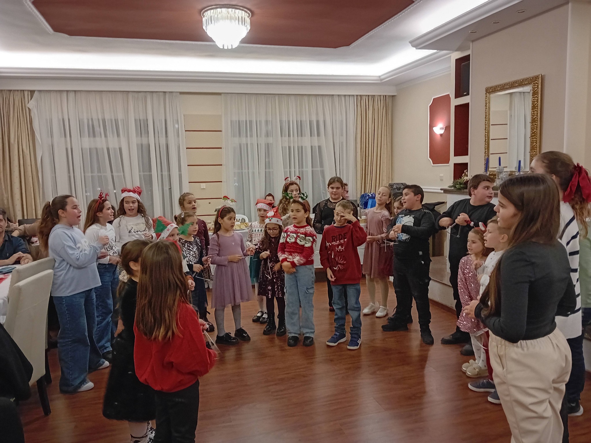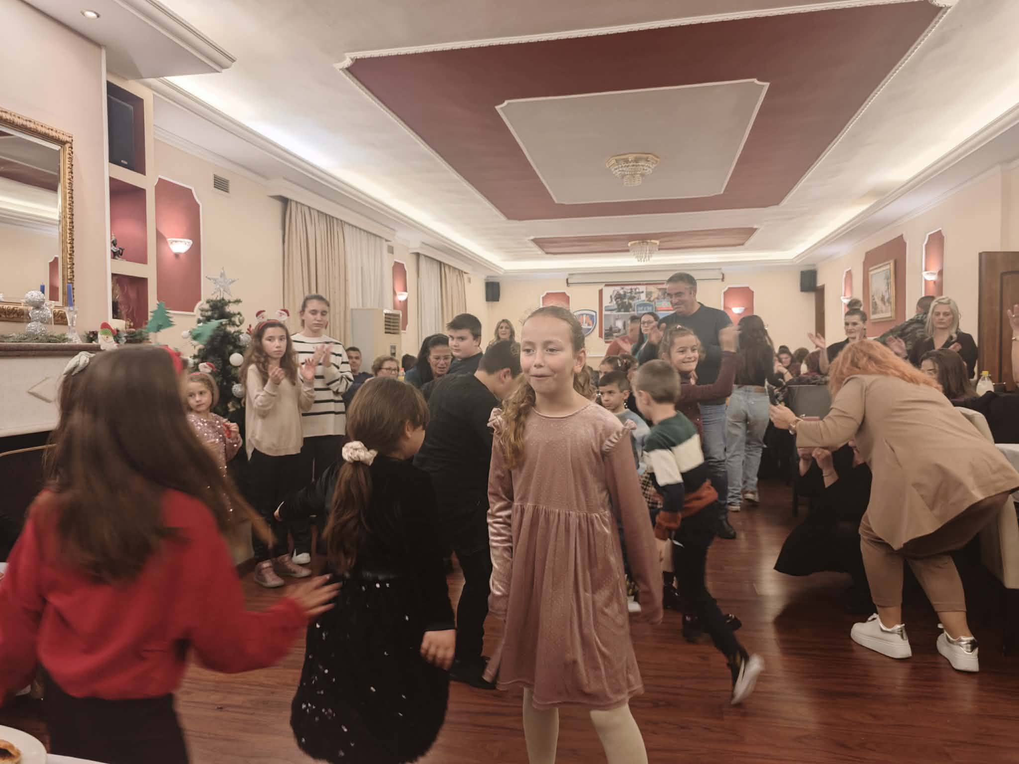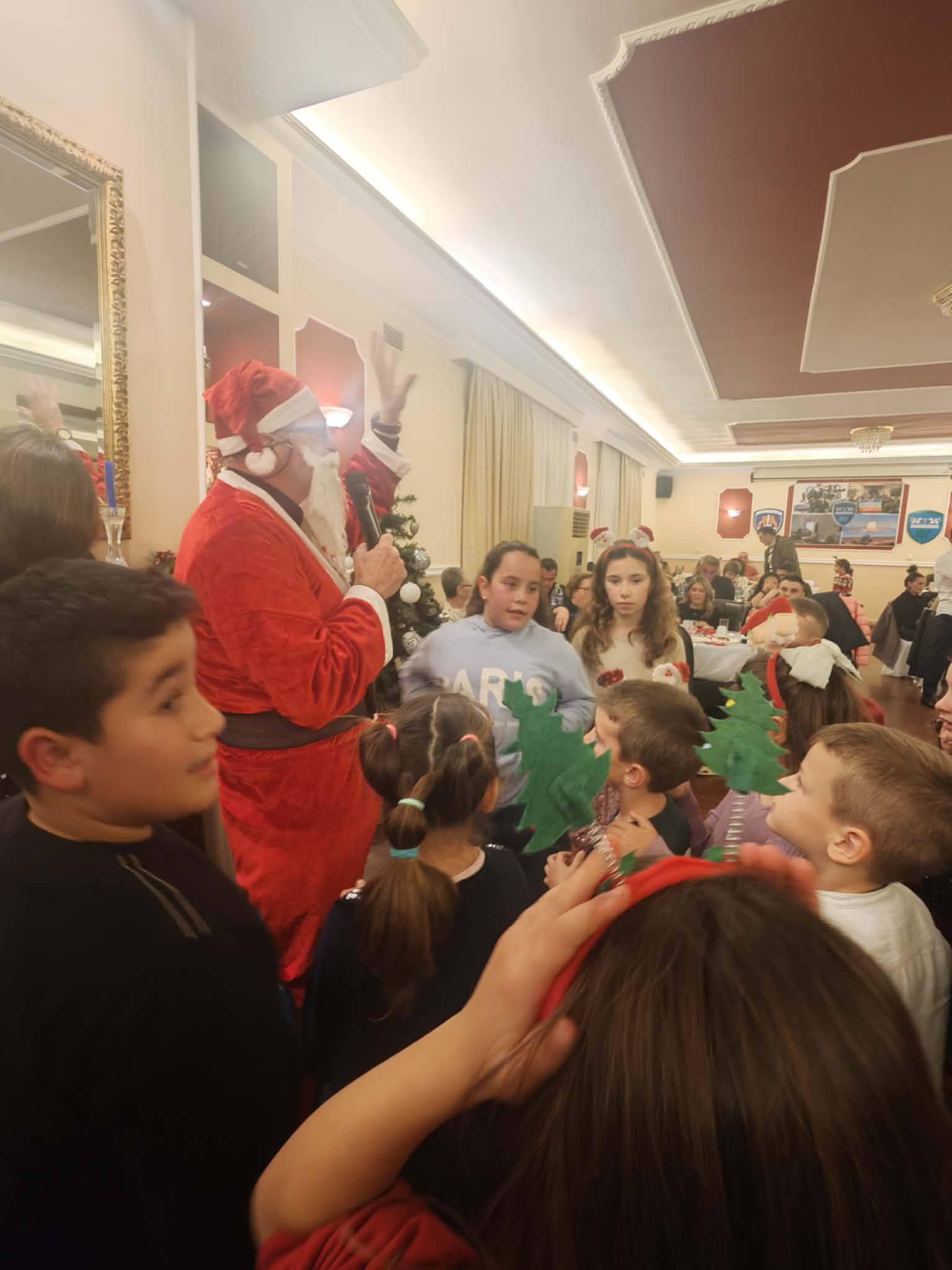 Τα παιδιά χόρεψαν για τα Χριστούγεννα που έρχονται.Η αίθουσα πλημμύρισε από χαμόγελα, μουσική, κάλαντα, παραδοσιακούς χορούς και το γνήσιο εορταστικό πνεύμα των ημερών ,χωρίς να λείπει βέβαια και η παρουσία του Αι Βασίλη που τόσο πολύ εντυπωσίασε τους μικρούς μας φίλους. Οι γεύσεις, ο χορός, η ζεστή φιλοξενία και η ζεστασιά, χαρακτηριστικό του Ομίλου μας συνέβαλλαν στη δημιουργία μιας μοναδικής γιορτινής βραδιάς.
