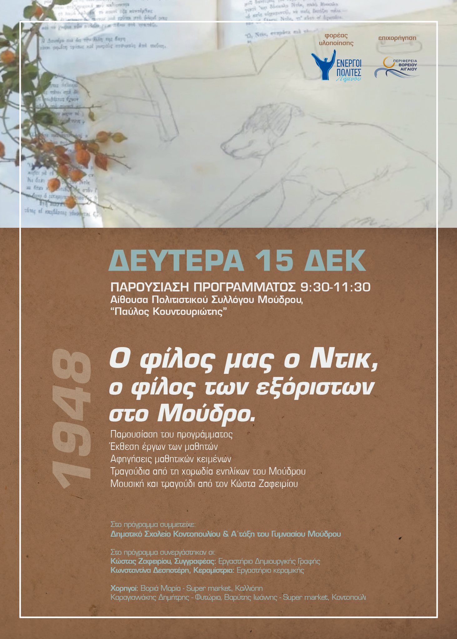 Η συγκεκριμένη δράση ανασύρει τη γνωστή ιστορία του Ντικ, του σκύλου που συντρόφευσε τους εξόριστους της εποχής και κατέληξε να γίνει μικρός θρύλος του Μούδρου!