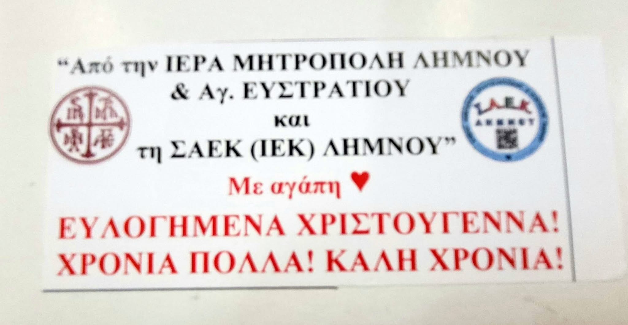 Την Τρίτη 23 Δεκεμβρίου 2025, σε συνεργασία με την Ιερά Μητρόπολη Λήμνου και Αγίου Ευστρατίου, υλοποιήθηκε για πέμπτη συνεχόμενη χρονιά η φιλανθρωπική δράση μέσω της όποιας μοιράστηκαν 200 Γεύματα Αγάπης, σε συνανθρώπους μας που το είχαν ανάγκη, στέλνοντας ένα καθαρό μήνυμα αλληλεγγύης ενόψει των Χριστουγέννων!