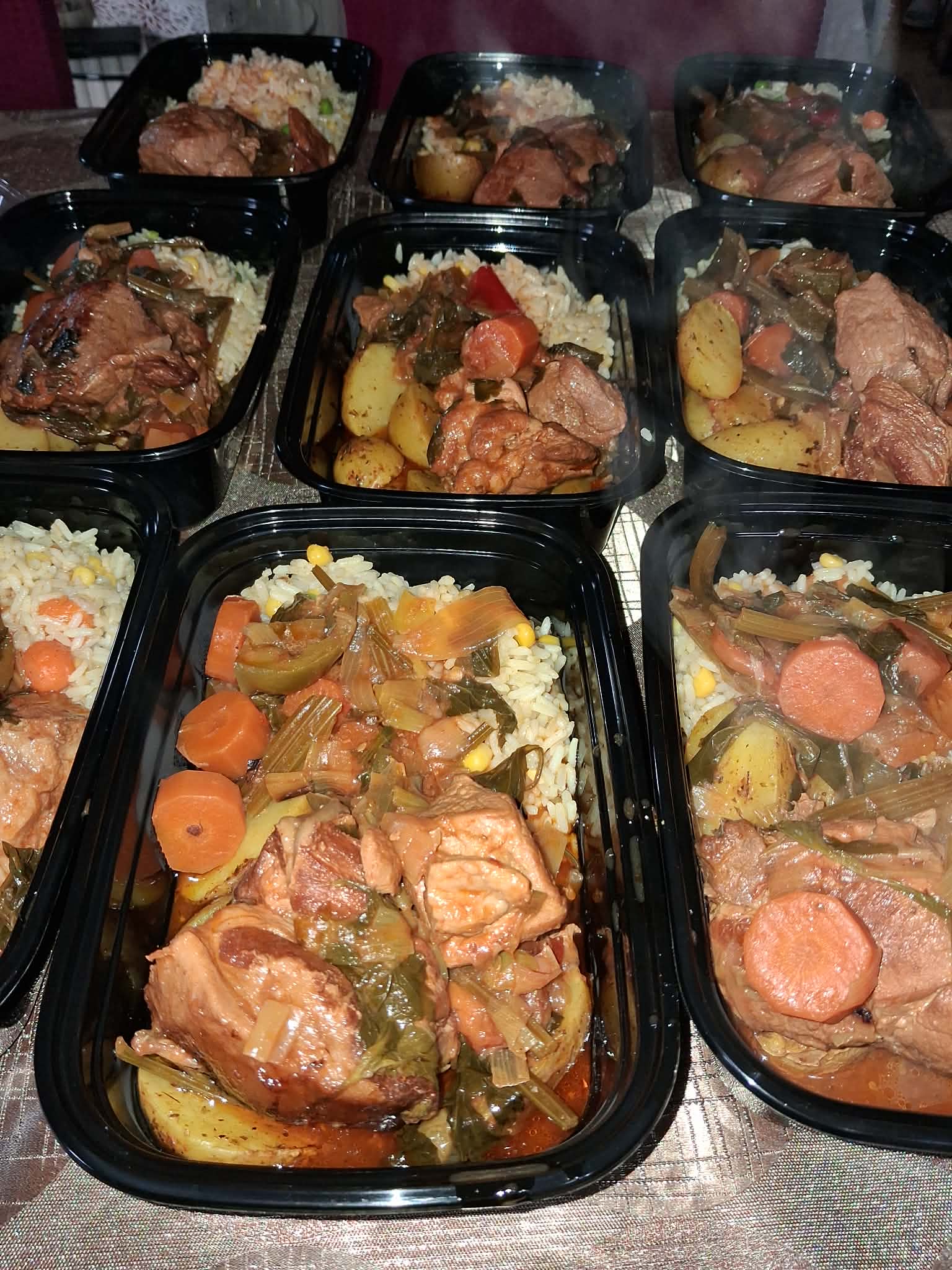 Αυτή τη φορά το μενού περιλάμβανε χοιρινό κοκκινιστό με πατάτες και ρύζι, συνοδευόμενο από σαλάτα αγγουροντομάτα. Αξίζει να σημειωθεί ότι το κρέας ήταν ευγενική προσφορά των κρεοπωλείων της κυρίας Ντάντου Μαλαμά, τόσο στο Πορτιανού όσο και στην Ατσική, τους οποίους ο Πρόεδρος ευχαριστεί θερμά για τη στήριξή τους.