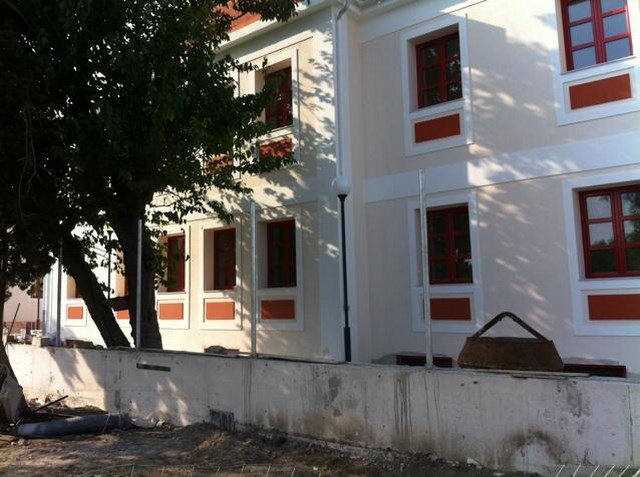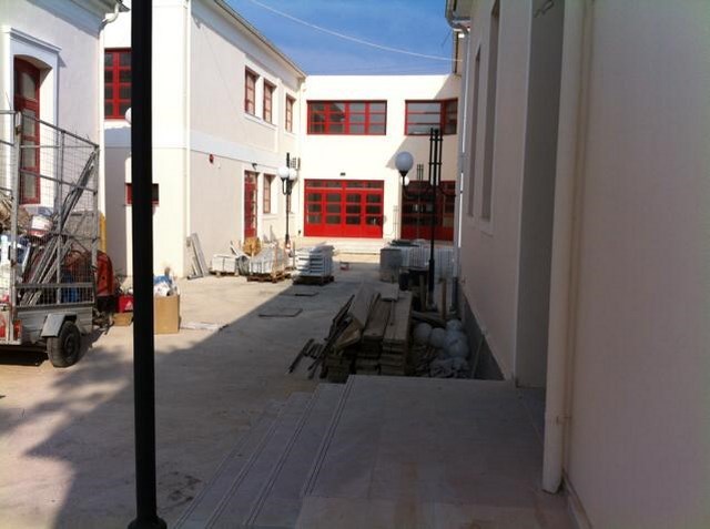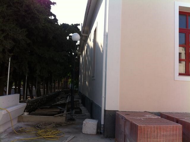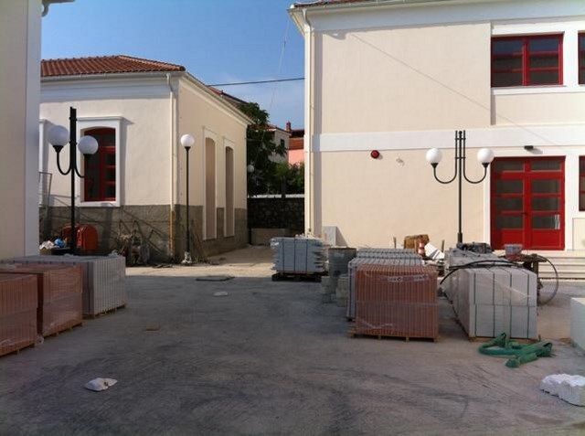 Αυτή τη στιγμή - σε ξεχωριστό έργο - εκτελούνται οι τελευταίες εργασίες στον εξωτερικό χώρο, με την ολοκλήρωση της εκ νέου κατασκευής της πέτρινης περίφραξης και τώρα ο εργολάβος περιμένει να παραλάβει και να τοποθετήσει τα νέα σιδερένια κιγκλιδώματα, αφού τα προϋπάρχοντα κρίθηκαν ακατάλληλα λόγω παλαιότητας.