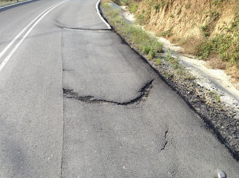Ρωγμές, λακκούβες και ο ολοκαίνουργιος ασφαλτοτάπητας να υποχωρεί.