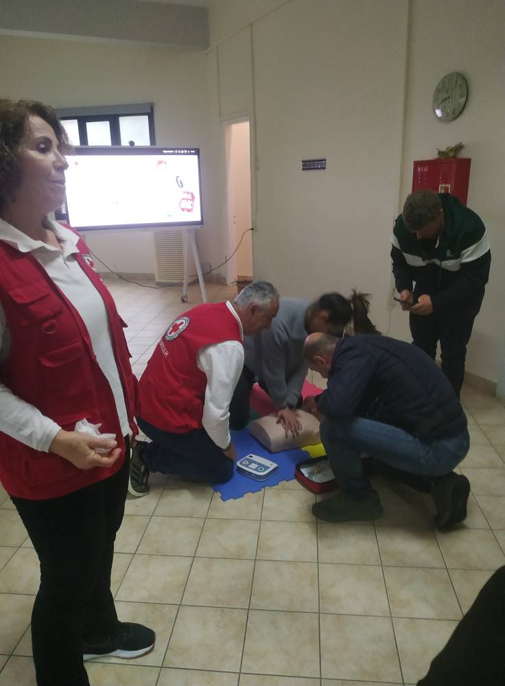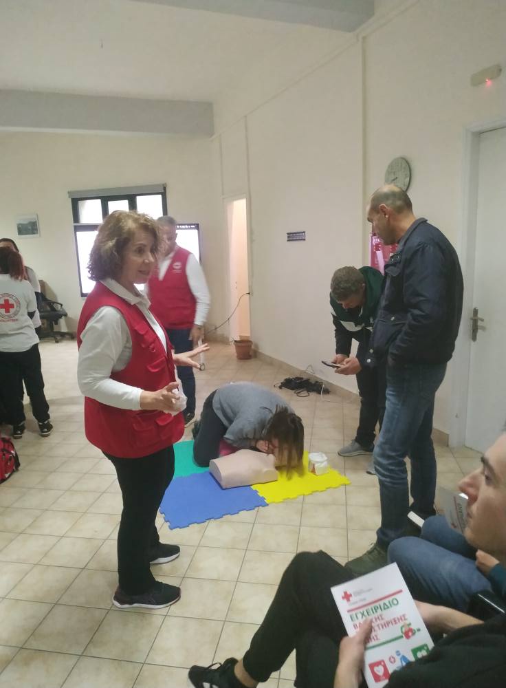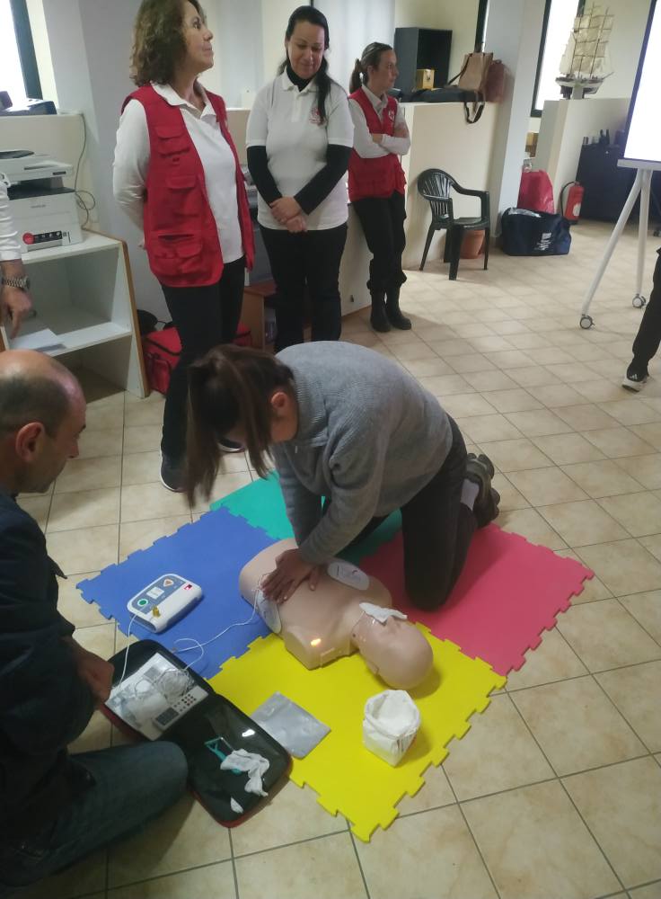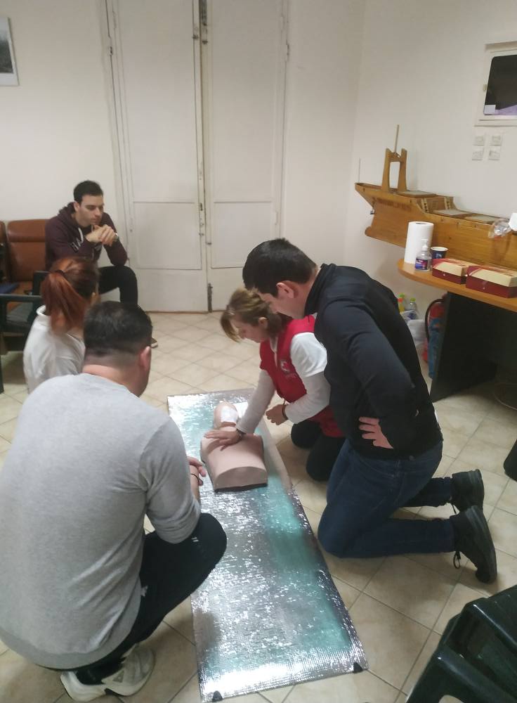 Την εκπαίδευση ανέλαβαν οι πιστοποιημένες εθελόντριες εκπαιδεύτριες του Τομέα Υγείας του Περιφερειακού Τμήματος Λήμνου-Αγίου Ευστρατίου, κ. Αλεξάνδρα Τζιρτή και κ. Βασιλική Καραγιάννη, με τη συνδρομή των εθελοντών κ. Χρήστου Γεωργίου, κ. Βίκης Ματθαίου, κ. Φωτεινής Γιαμάκου και κ. Ελένης Ρούφου. Η δράση πραγματοποιήθηκε στην αίθουσα του Λιμεναρχείου Μύρινας, με την ενεργή στήριξη του Λιμενάρχη, κ. Χρήστου Καλτσούνη, και την παρουσία του Προέδρου του τοπικού τμήματος ΕΕΣ, κ. Δημητρίου Αχιλαδέλλη.
