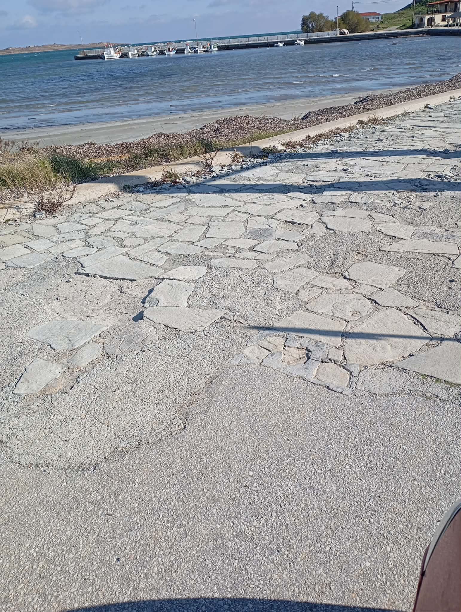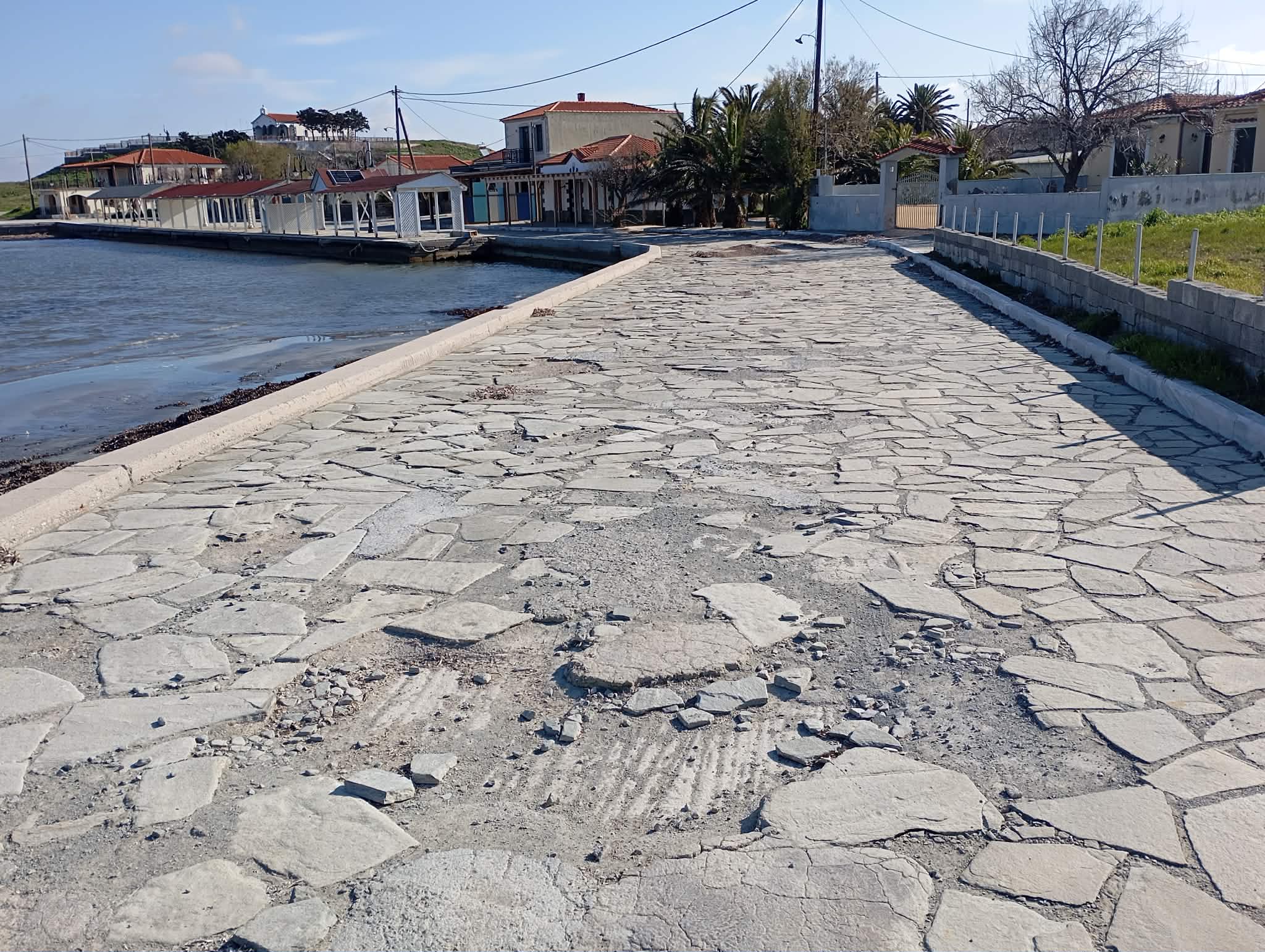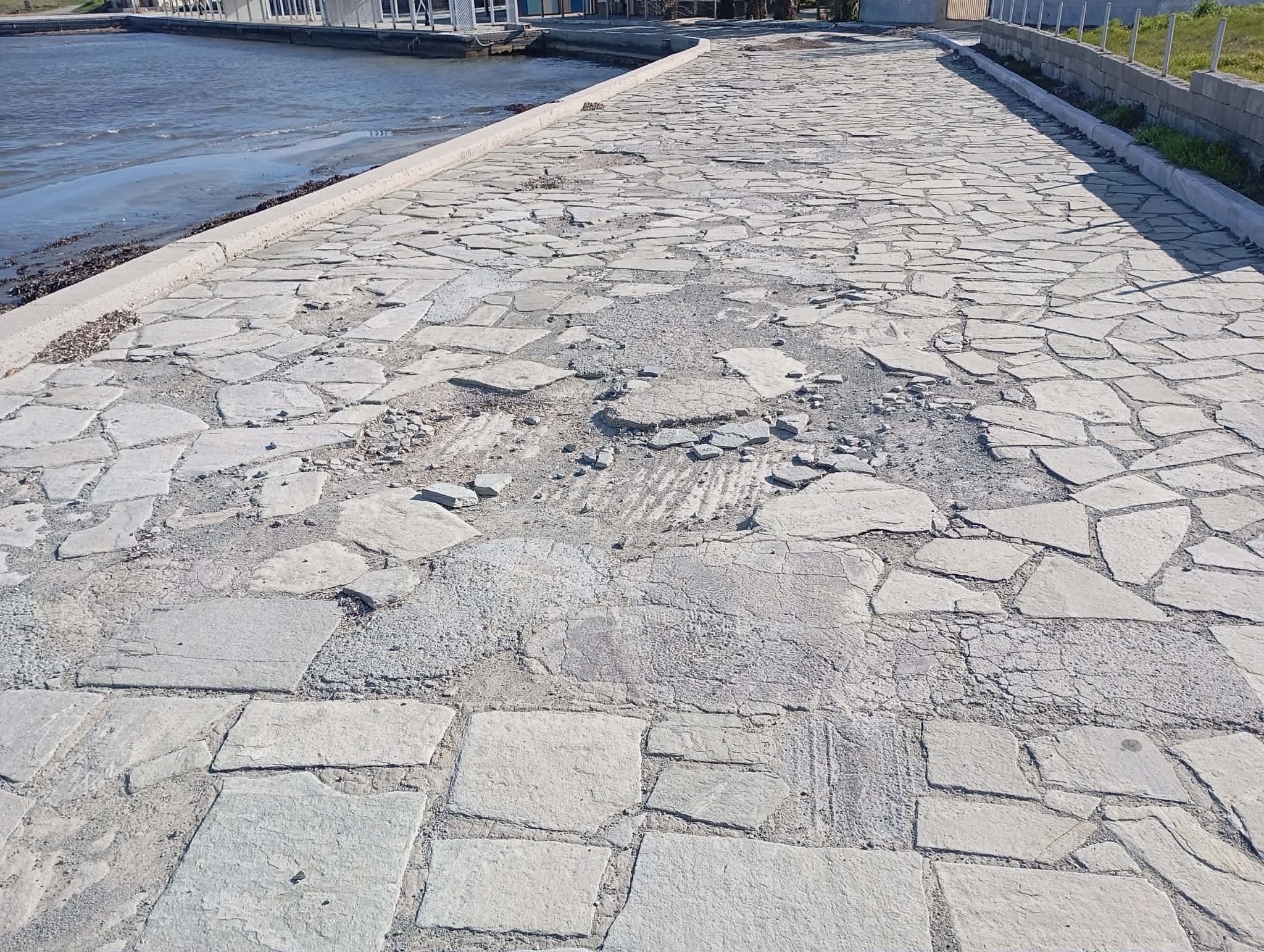 Αποκατάσταση του πλακόστρωτου: Σε αρκετά σημεία του παραλιακού πεζόδρομου, οι πέτρινες πλάκες παρουσιάζουν φθορές και αποκολλήσεις. Μια στοχευμένη συντήρηση θα διασφάλιζε την άνετη και ασφαλή περιήγηση των περιπατητών.