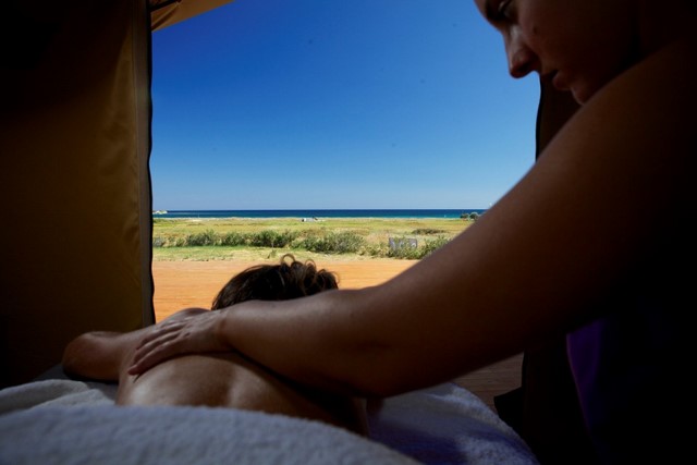 Καθώς όμως τα χρόνια περνούσαν και οι επισκέπτες αυξάνονταν και ακριβώς επειδή η ανατολική Λήμνος είναι περισσότερο «ανεκμετάλλευτη» τουριστικά, υπήρχε η ανάγκη για την εξασφάλιση μίας όσο το δυνατόν περισσότερο οικολογικής διαμονής. Το «glamping» ήταν η λύση που συμφωνούσε με τη μορφολογία της περιοχής –αφού το Κέρος είναι προστατευόμενο- και το προφίλ των πελατών. Glamping ίσον glamorous camping, μία σκηνή που βρίσκεται ήδη στημένη και μέσα είναι διαμορφωμένη σαν ένα δωμάτιο ξενοδοχείου, «βέβαια μπορεί να κοιμάσαι σε στρώμα coco-mat αλλά το πρωί θα ξυπνήσεις από τον ήχο των ζουζουνιών που υπάρχουν τριγύρω».