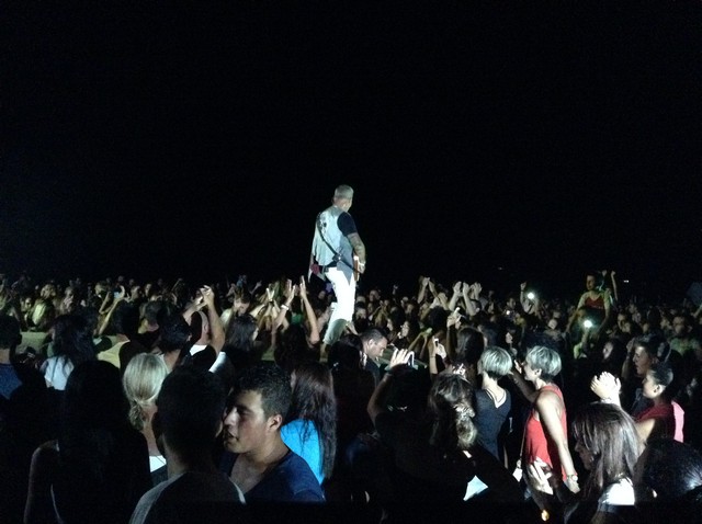 Ο κόσμος από νωρίς, άρχισε να καταφθάνει στην παραλία, έχοντας μαζί του όλα εκείνα τα αξεσουάρ, που θα τον βοηθούσαν να παρακολουθήσει άνετα τη συναυλία.