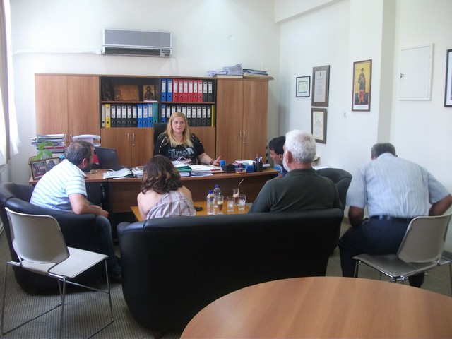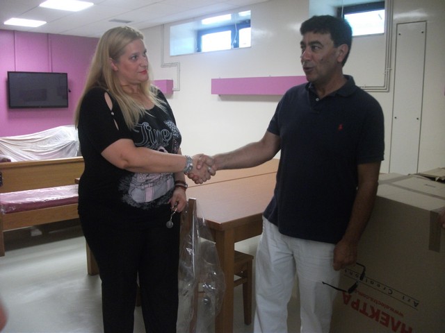 Η διοικήτρια του νοσοκομείου κ. Λυμπέρη, υποδέχθηκε τον μεγάλο ευεργέτη, στο γραφείο της μαζί με τους Ιατρούς του ψυχιατρικού τμήματος, κα. Ξυπολία και κ. Κατσιγιανόπουλο.