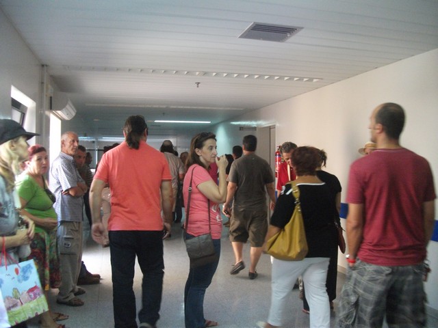 Μετά την πρώτη ενημέρωση το συγκεντρωμένο πλήθος ζήτησε συνάντηση με την κ. Λυμπέρη, η οποία και τους δέχθηκε στο προαύλιο χώρο του νοσοκομείου.