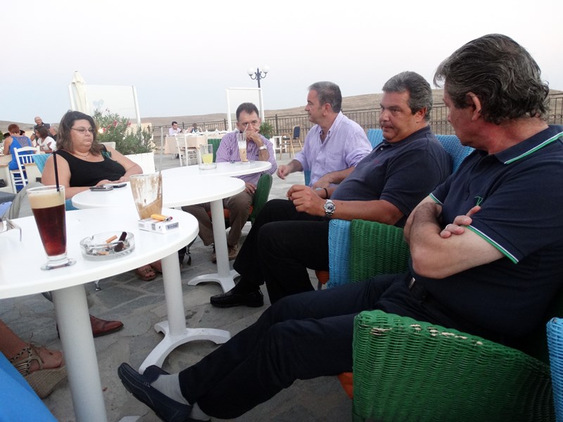 Εδώ, ο Πάνος Καμμένος, χθες βράδυ στο Βάρος Village, συναντάει και κουβεντάζει με μέλη της Ένωσης Ξενοδόχων Λήμνου.