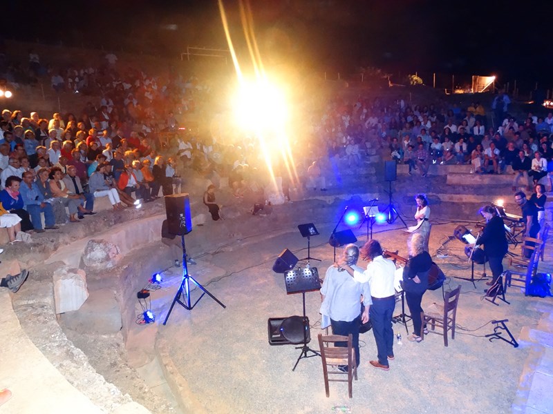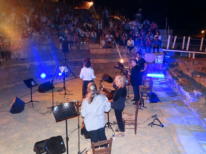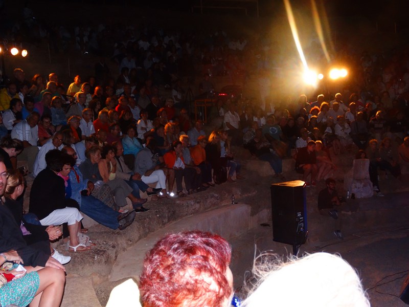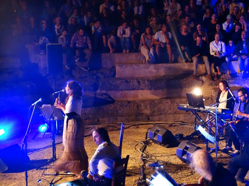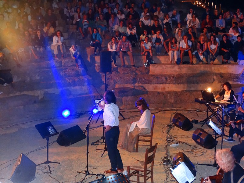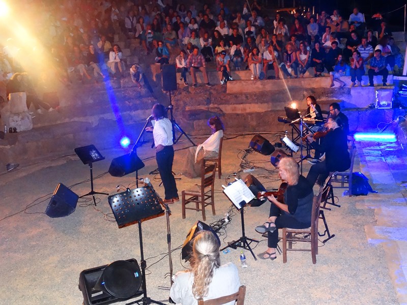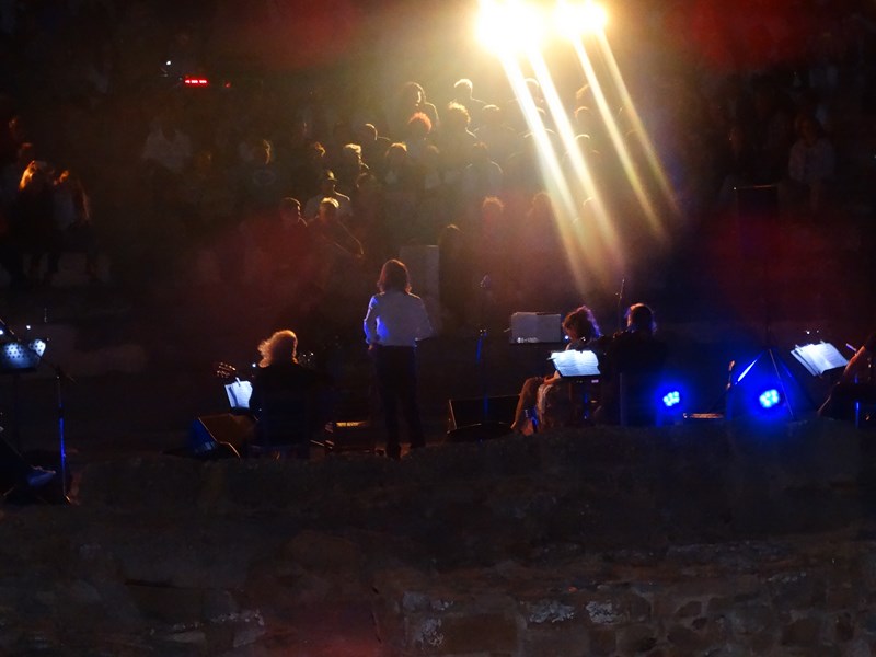 Ο άνεμος λυσσομανούσε στην κυριολεξία από την αρχή μέχρι το τέλος της μουσικής παράστασης και ήταν σαν να πήγαμε με καλοκαιρινή αμφίεση στις πέτρινες κερκίδες του θεάτρου, κάποιο παγωμένο βράδυ του χειμώνα.
