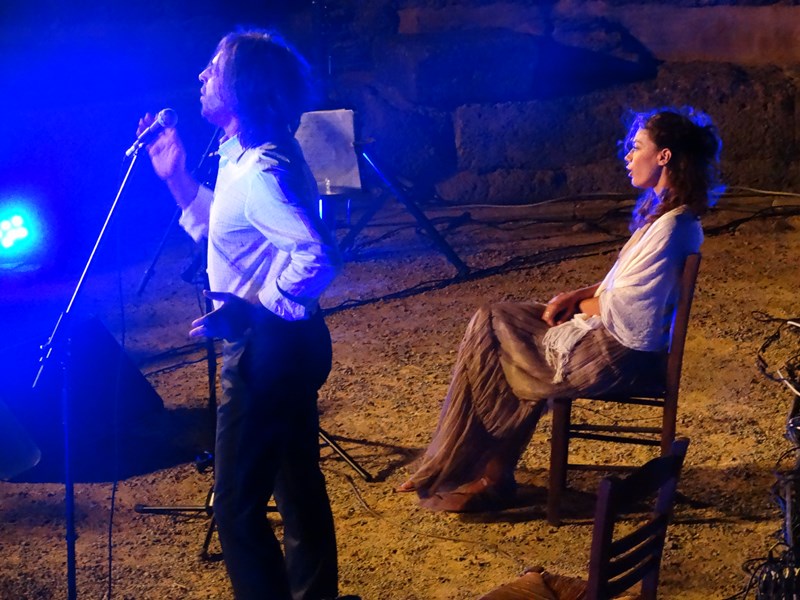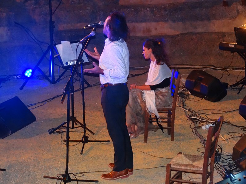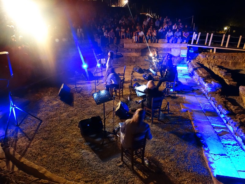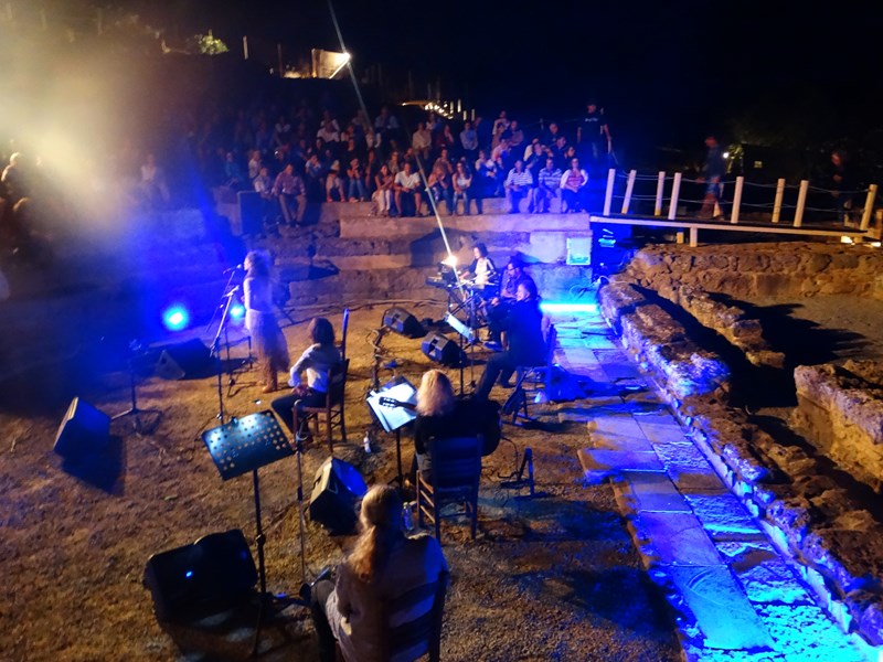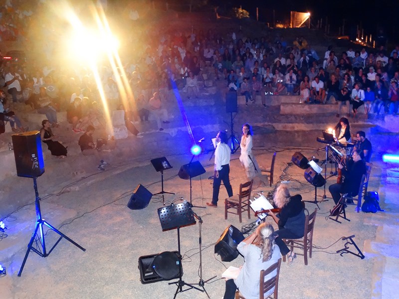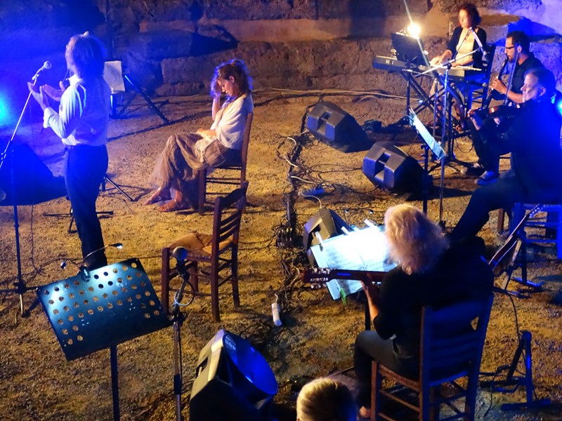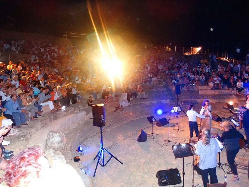 Ο άνεμος λυσσομανούσε στην κυριολεξία από την αρχή μέχρι το τέλος της μουσικής παράστασης και ήταν σαν να πήγαμε με καλοκαιρινή αμφίεση στις πέτρινες κερκίδες του θεάτρου, κάποιο παγωμένο βράδυ του χειμώνα.