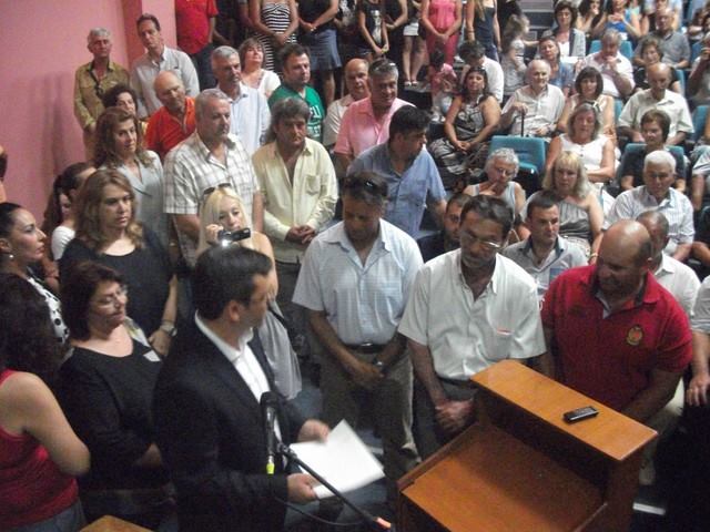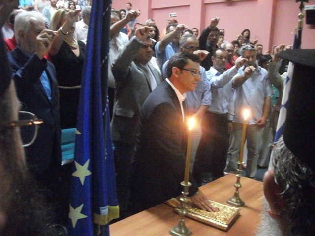 Ακολούθησε ο πολιτικός όρκος των εκλεγμένων εκπρόσωπων του ΚΚΕ, υπό την καθοδήγηση του νέου Δημάρχου και αμέσως μετά ο Δημήτρης Μαρινάκης, αφού χαιρέτησε του παρευρισκόμενους, επισήμανε με τη σειρά του πως μόνο «Ενωμένοι θα αλλάξουμε τη Λήμνο» και πως μόνο μέσα απο ομαδική δουλειά και συνεργασία θα καταφέρουμε το καλύτερο για τον τόπο μας.