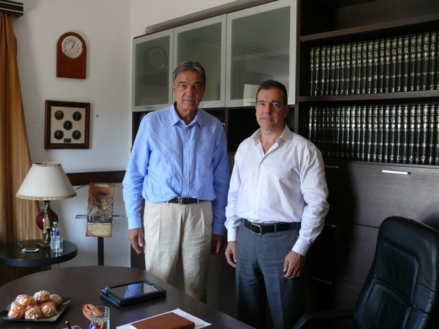 Λίγη ώρα αργότερα ο κ. Σηφουνάκης κατευθύνθηκε προς το Επαρχείο Λήμνου, όπου πραγματοποίησε συνάντηση με τον Έπαρχο του νησιού, Ευάγγελο Γιαρμαδούρο.